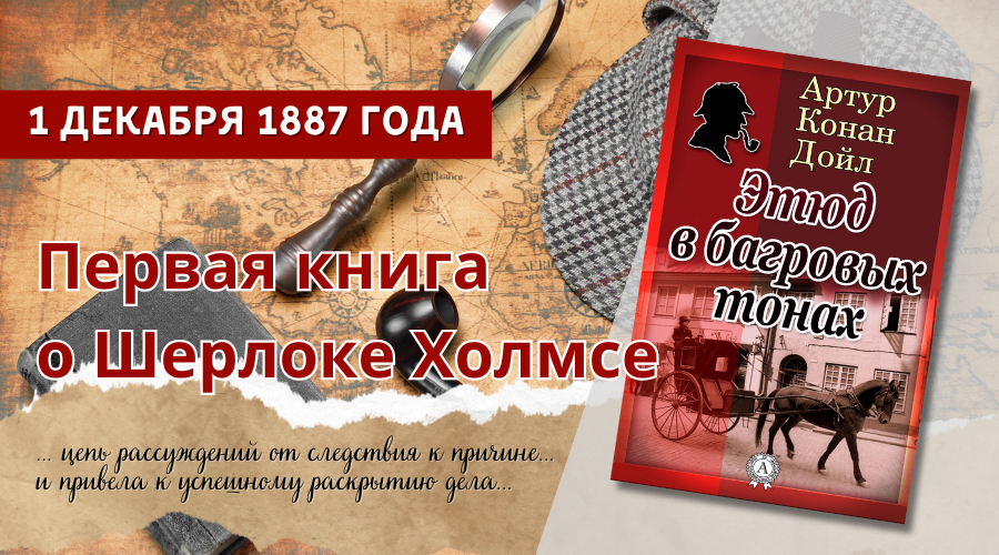 1 декабря 1887 года «Рождественский ежегодник Битона» опубликовал первую историю Конан Дойла о Шерлоке Холмсе – «Этюд в багровых тонах».