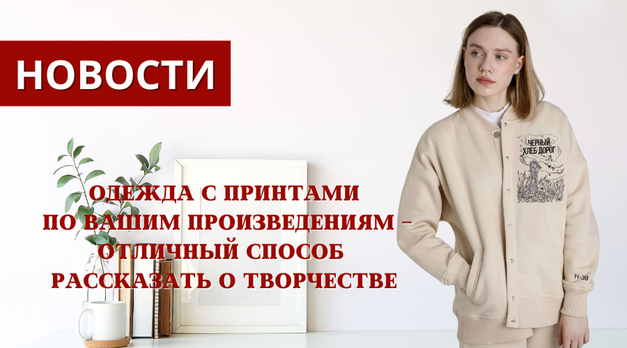 Одежда с принтами по вашим произведениям — еще один отличный способ рассказать о творчестве