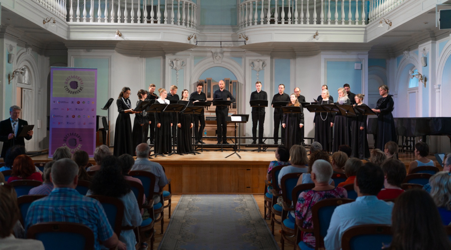 Хоровой концерт-презентация издательства современной академической музыки «Шостаковичи и Стравинские» прошел 3 июля в Рахманиновском зале Московской консерватории.