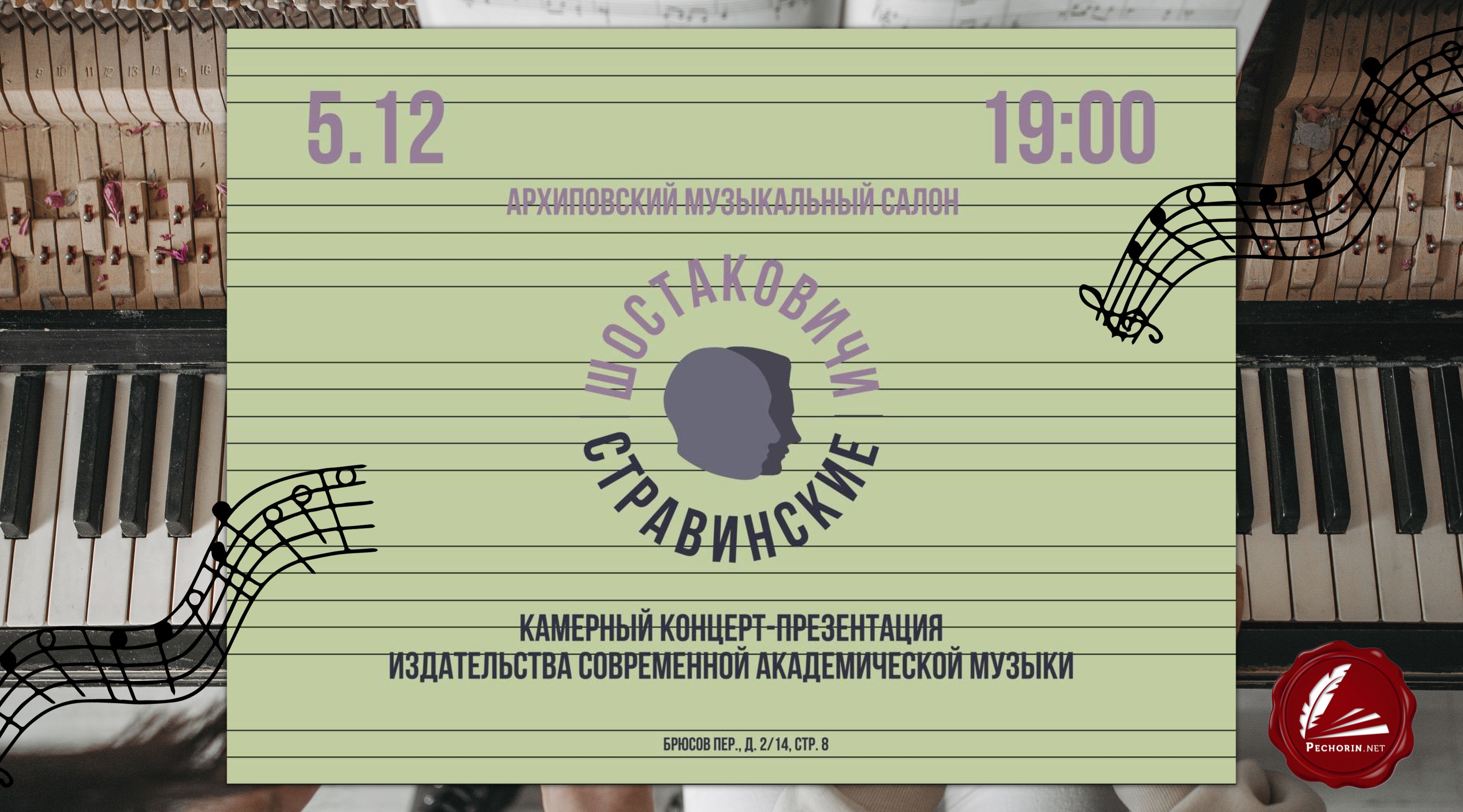 5 декабря в Архиповском музыкальном салоне при Московской консерватории под эгидой Союза Композиторов Евразии состоится концерт-презентация издательства современной академической музыки «Шостаковичи и Стравинские».
