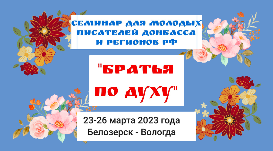В рамках семинара «Братья по духу» для молодых писателей России, Донбасса и освобожденных территорий запланирована литературная учеба, творческие вечера в Белозерске и Вологде, издание сборника лучших произведений участников.