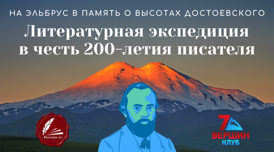 Литературный портал «Pechorin.net» и Российская альпинистская компания «Клуб 7 Вершин» объявляют о начале творческой экспедиции на Эльбрус, посвященной 200-летию Федора Михайловича Достоевского, юбилейную дату рождения которого широко отмечают в России и в мире в 2021 году.