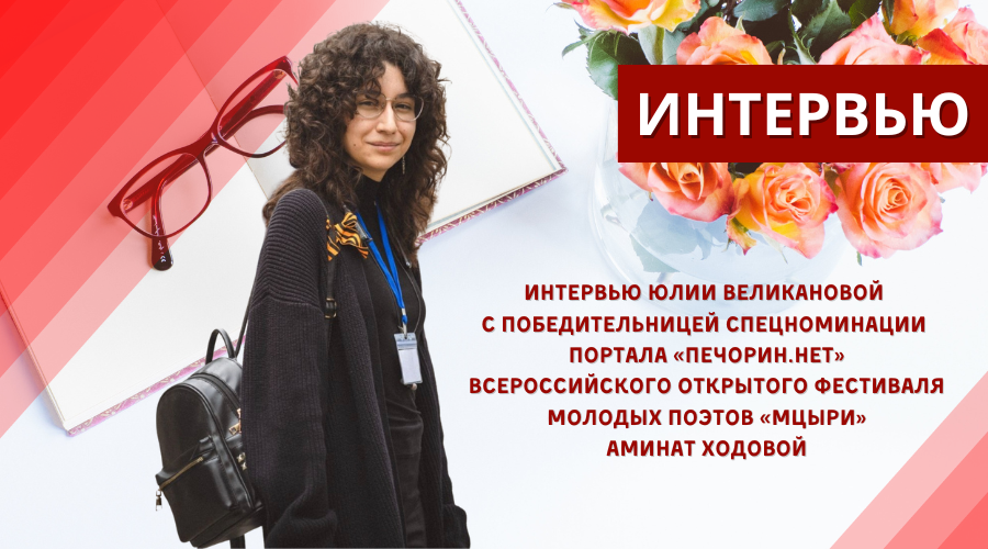 Член жюри XX юбилейного Всероссийского открытого фестиваля молодых поэтов «Мцыри» Алексей Небыков учредил спецноминацию портала «Печорин.нет»: рецензия и публикация подборки стихов. Победу одержала Аминат Ходова. Главному редактору портала запомнились стихи о родном доме, любви к Родине, защите Отечества. Предлагаем интервью с нашей победительницей. Беседовала Ю. Великанова.