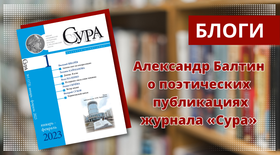 А. Балтин обозревает поэтические публикации первого номера журнала «Сура» за 2023 год – подборки стихов Олеси Николаевой, Влада Маленко, Анны Долгарёвой, Татьяны Кадниковой, Игоря Караулова, Ивана Нечипорука, Валерия Сухова. Подводя итог, обозреватель заключает, что «Сура» словно приоткрыла золотоносную жилу современной поэзии.