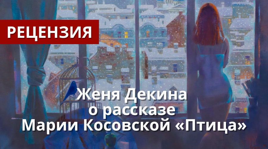 Рецензия Жени Декиной - члена Союза писателей Москвы, Союза писателей России, Международного ПЕН-центра, редактора отдела прозы портала «Литерратура», преподавателя семинаров СПМ и СПР, лауреата многих конкурсов, литературного критика «Печорин.нет» - на рассказ Марии Косовской «Птица».