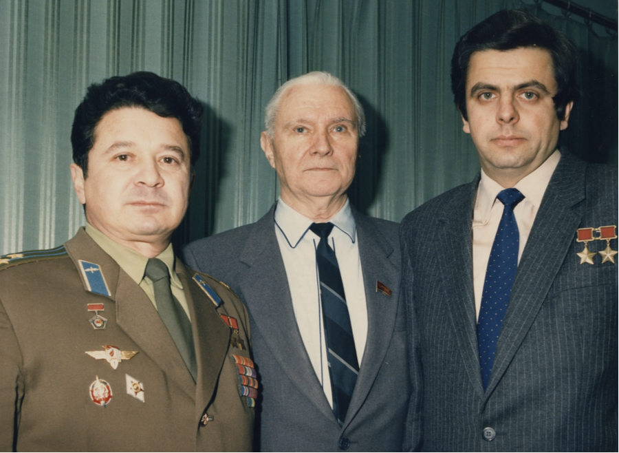 На фото: Валентин Петрович Глушко (в центре) с Владимиром Соловьевым и Леонидом Кизимом.