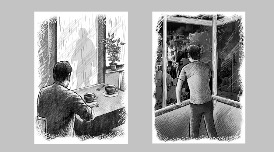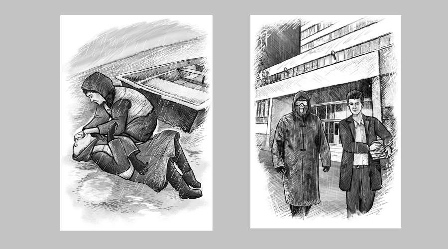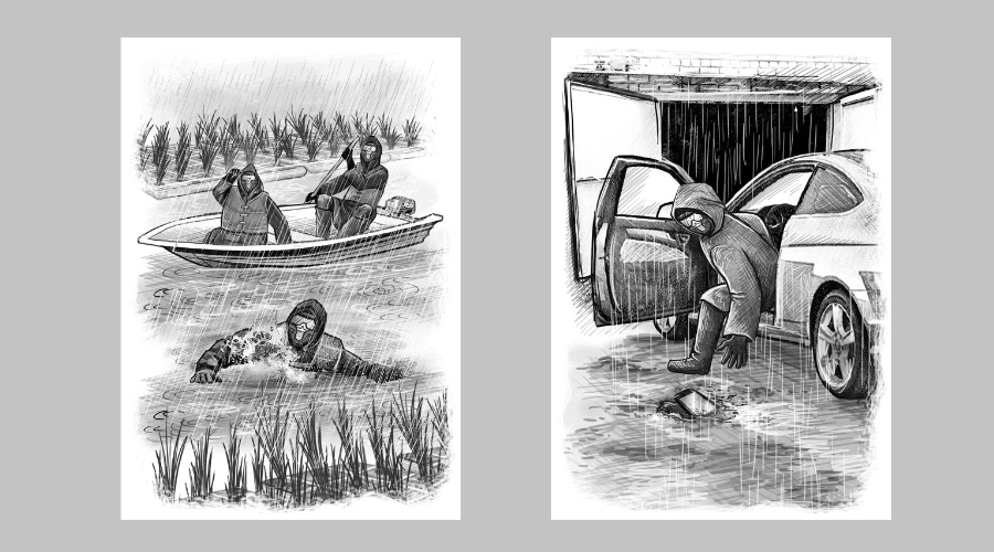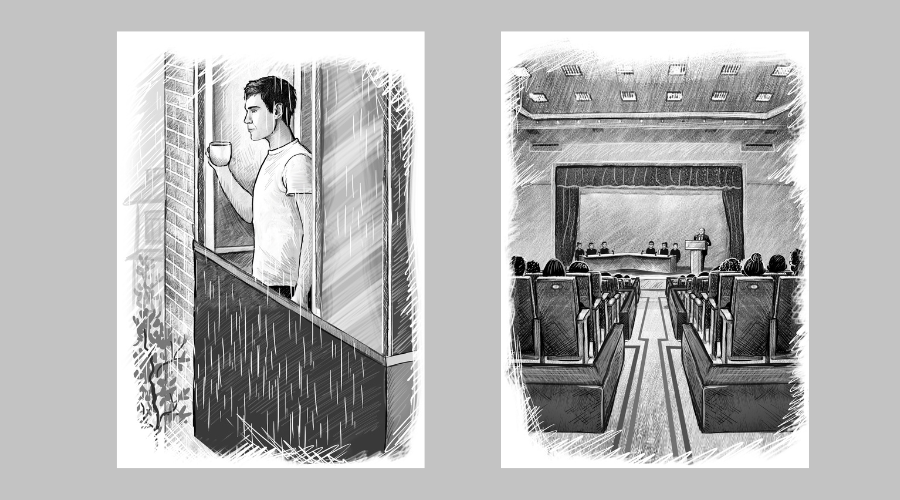Дождь выступает в обличье «непреодолимой силы», победить (разгадать) которую пытается молодой учёный-биолог, изучающий воздействие небесного потопа на окружающую природу, общество и отдельных людей. Мокрая «сила» исследуется автором по двум аспектам: внешнему и внутреннему. Внешний выглядит достаточно наглядно и просто – это непрерывный ливень, доставляющий массу неудобств жителям города, вынужденным выходить на улицу в специальной (здесь уместно вспомнить недавнюю эпидемию ковида) экипировке. Внутренний – это замечаемые и анализируемые героем психо-антропологические изменения, происходящие в окружающих его людях, или – бери выше! – в homo sapiens, как биологическом виде. Есть в повести и романтическая линия, связанная с появлением в НИИ, где трудится герой его давней (первая любовь) подруги – Ольги. Когда-то они были близки, но жизнь развела их, и вот, спустя годы, Ольга устраивается в НИИ на должность заместителя директора. Но эта интрига, как и некоторые другие сюжетные линии, намеченные в повести, должного развития не получает.