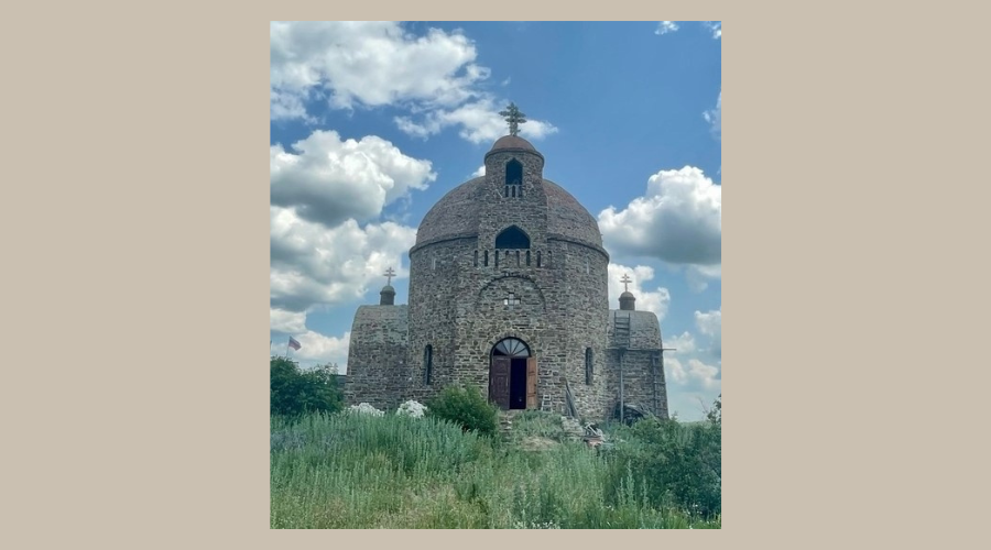 История этого подвижника – потрясающая: в 1992 году Николаю Ивановичу, находящемуся далеко от дома, было видение горы вблизи родной деревни, и Голос сказал: «Езжай домой и строй храм». Он бросил успешные археологические исследования в Латинской Америке, обещавшие мировую славу, и вернулся в родную деревню под Луганском. Поселился в палатке на горе из своего видения и начал строить дом и храм из местного камня.