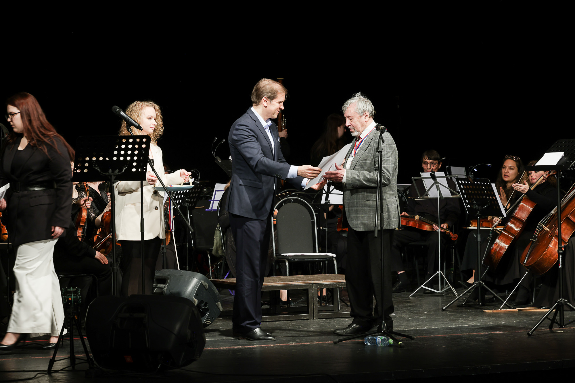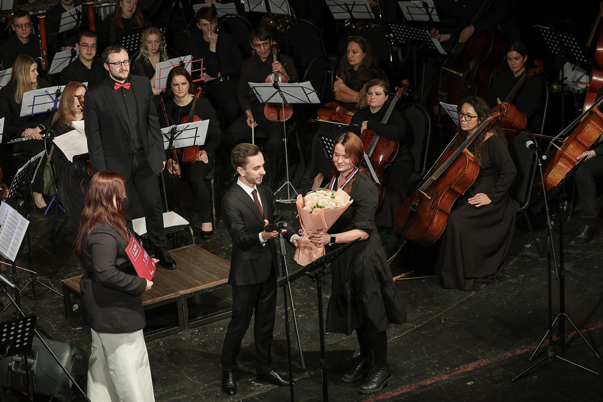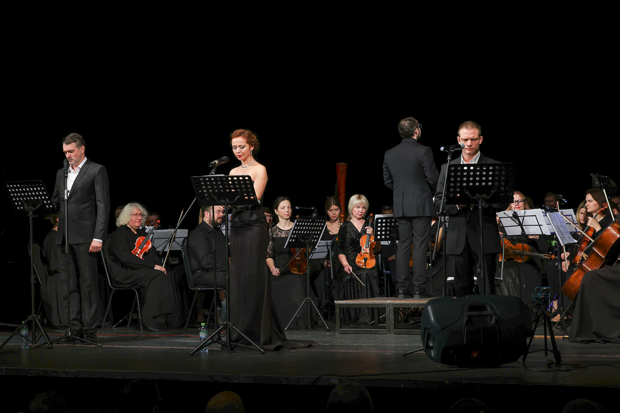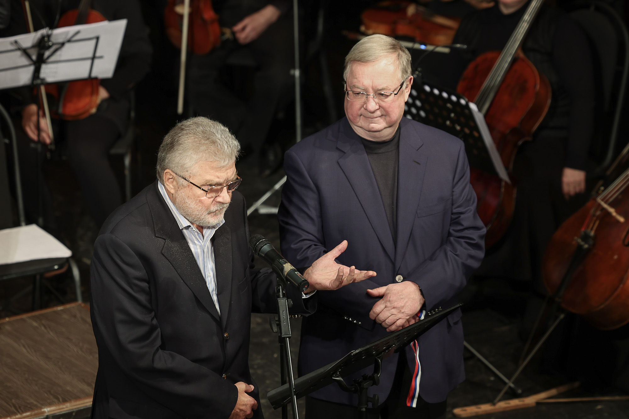 Актеры театра и кино Павел Трубинер, Елена Захарова и Евгений Ткачук, симфонический оркестр Mendeleev Filarmonica РХТУ им. Д.И. Менделеева под управлением Евгения Рубцова