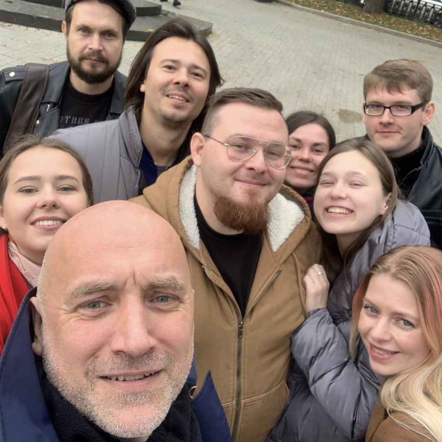 На фото участники мастерской, кураторы Олег Демидов, Матвей Раздельный и Захар Прилепин