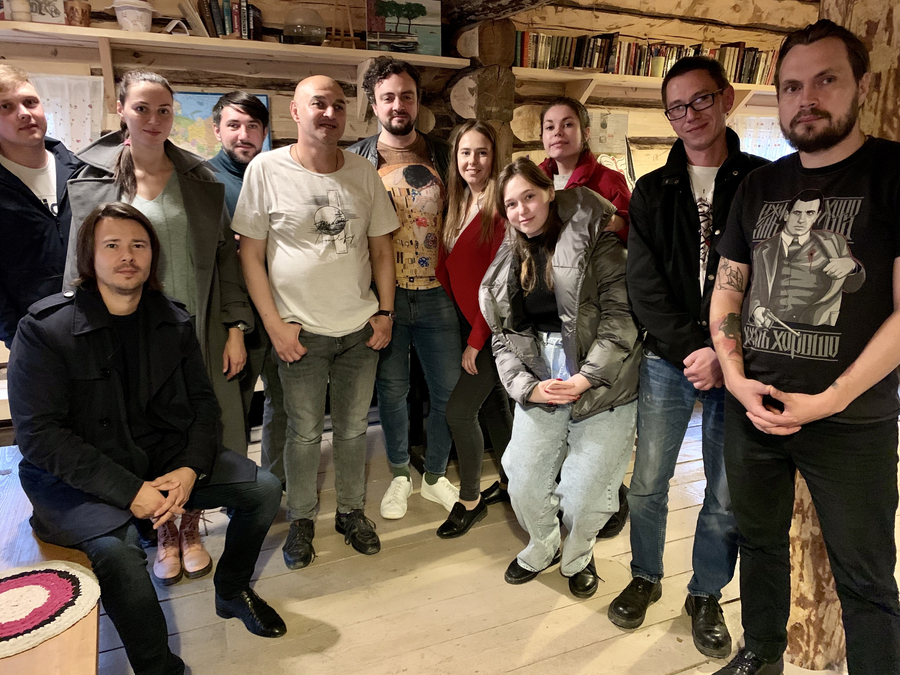 Первая встреча - самая важная. Кураторы школы Алексей Колобродов, Олег Демидов, Матвей Раздельный очень тепло принимали нас. Всегда расслышат, всегда поймут и подскажут. Сергей Ершов чутко руководил в избе продовольственными и другими нетворческими процессами.