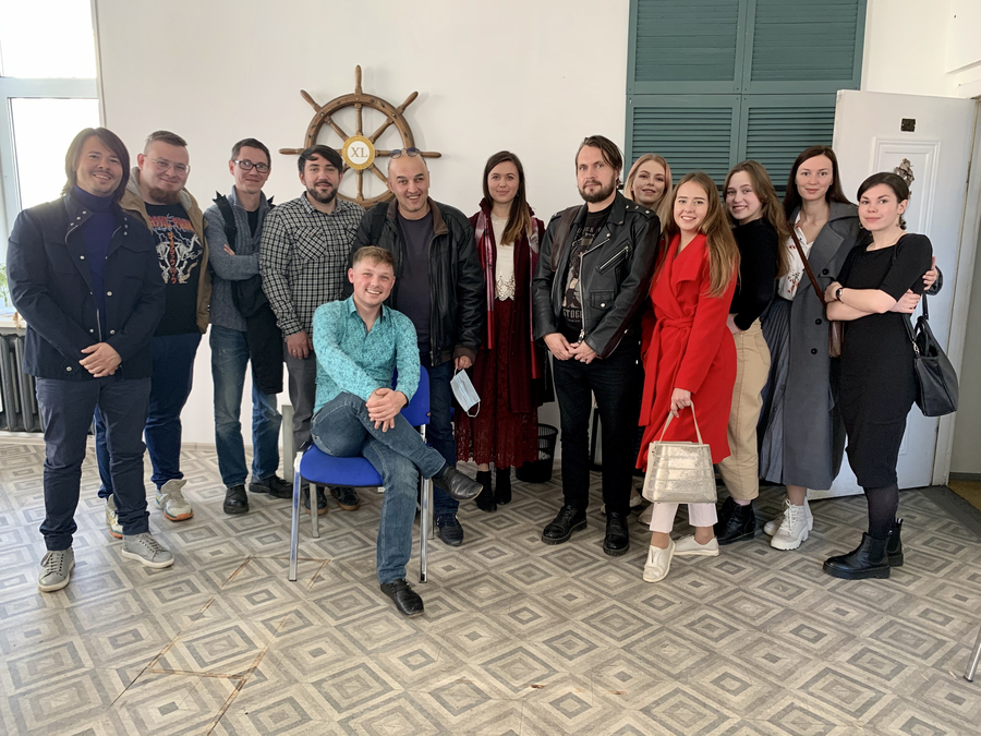 На фото участники мастерской, кураторы Алексей Колобродов, Олег Демидов и Татьяна Стоянова (в центре)