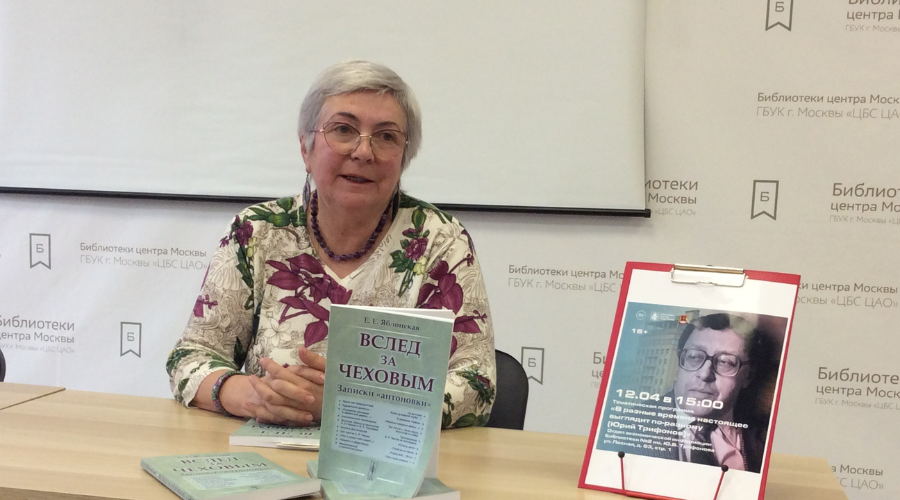 О совести и чести радеет русская литература из века в век. И здесь так уместно прозвучали параллели и духовные связи в творчестве Ю.В. Трифонова и А.П. Чехова, которым посвятила своё выступление писатель Елена Яблонская. Её лекции о Чехове и других русских писателях хорошо знакомы слушателям лаборатории «Красная строка», но сегодняшнее сближение двух писателей прозвучало по-особенному.