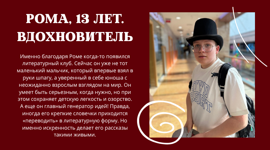 В следующей главе перед нами эксперимент — коллективное творчество: Роман Шорохов, Эстер Шидловская, Соня Горожанкина и Миша Романов создают фантазию «Коридор сновидений». Это пространство сна — излюбленный мотив отечественной литературы, где автор может быть свободен в своих чувствах, встретиться с подсознательными страхами, испытать скакуна фантазии, вступить в запретное пространство. Здесь есть поистине абсурдистские образы, показывающие, что непосредственное сознание человека может больше, чем книжность. Кот оседлал таракана и поскакал на нем, герой выстрелил из кружки чая (почему-то я вспомнила Алису в Стране чудес), насекомое испекли в печке-гриль. В таком эксперименте нет морали, в отличие от рассказа о хозяйках болонок, но зато живет вольное воображение, и автор может выпустить свое подсознательное, не боясь его. Психологическая роль таких опытов, не говоря уже о пользе коллективной работы для юности, возможно, еще не оценена нами в полной мере.