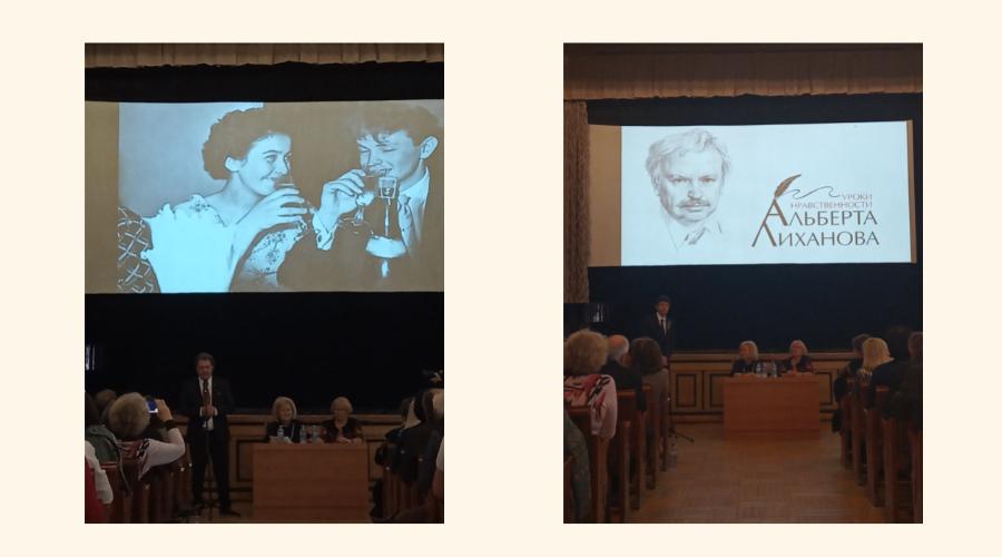 А. А. Лиханов всю жизнь испытывал большую благодарность к учителям. По его инициативе вручалась премия лучшим учителям России – имени А. Н. Тепляшиной, его первой учительницы. На вечере выступила Е. О. Галицких, учитель, друг А. Лиханова, автор книги «Изучение творчества Альберта Лиханова в школе». В своем выступлении Елена Олеговна отметила огромное значение «Педагогической прозы» Лиханова (в 3-х томах), издания «Драматическая педагогика».