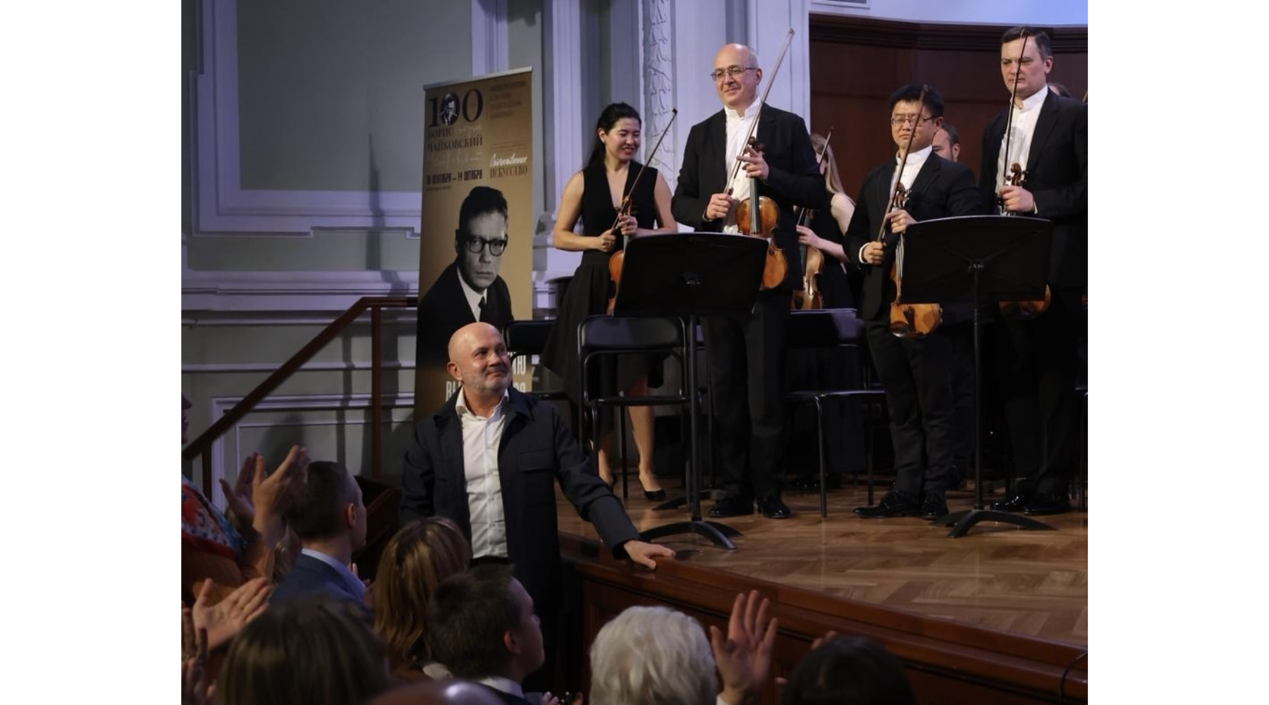 Юрий Борисович Абдоков и Алина Небыкова на презентации монографии «Мир Бориса Чайковского» в Большом зале Московской консерватории, октябрь 2025 года