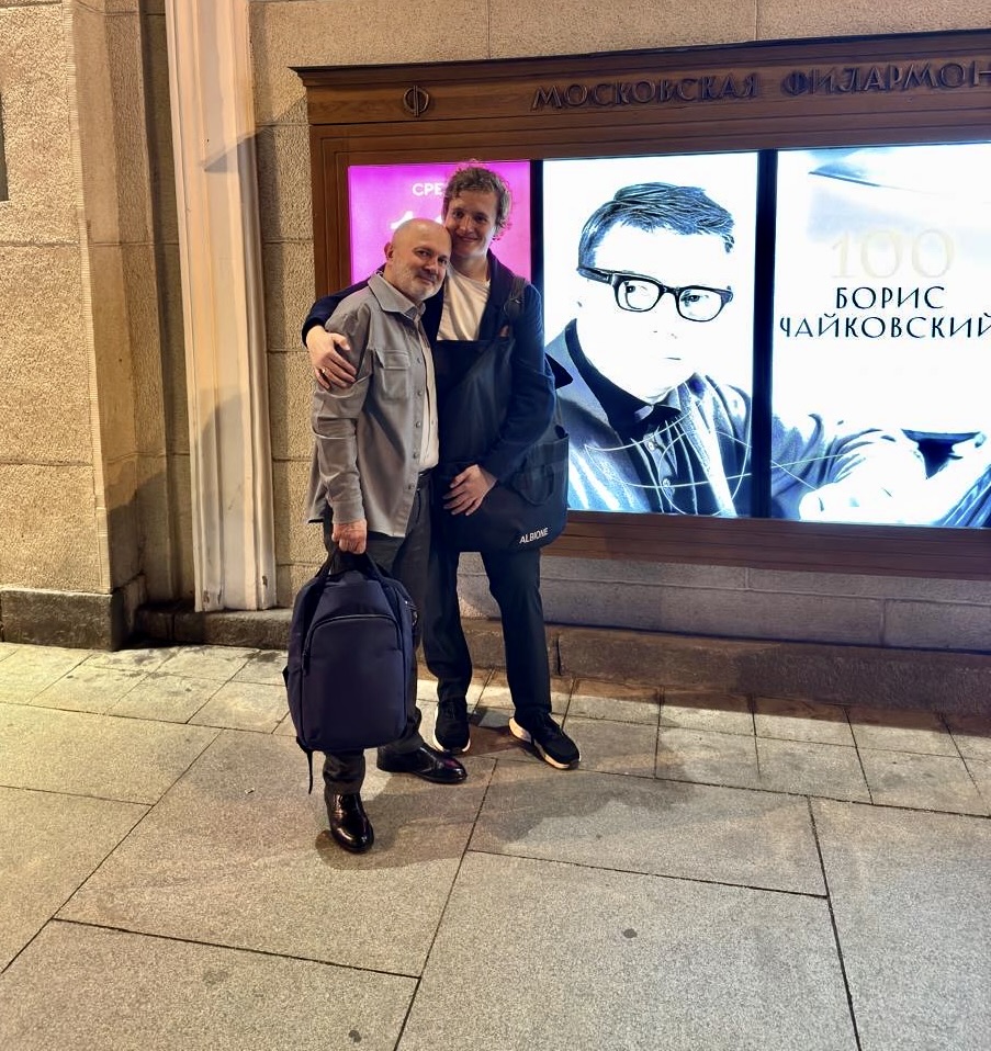 Учителя и ученики. Юрий Абдоков и Иван Никифорчин после открытия концертной серии к 100-летнему юбилею Бориса Чайковского в Концертном зале имени П.И. Чайковского 10 сентября 2025 года