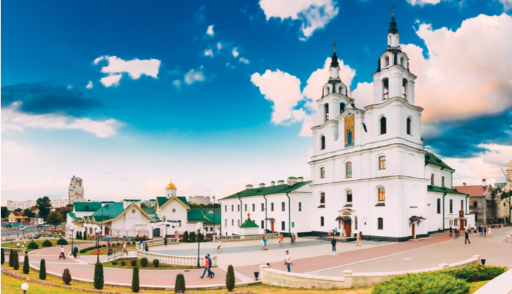 На фото: Кафедральный собор Сошествия Святого Духа — главный храм Белорусского экзархата Русской Православной церкви; одна из главных достопримечательностей Минска.
