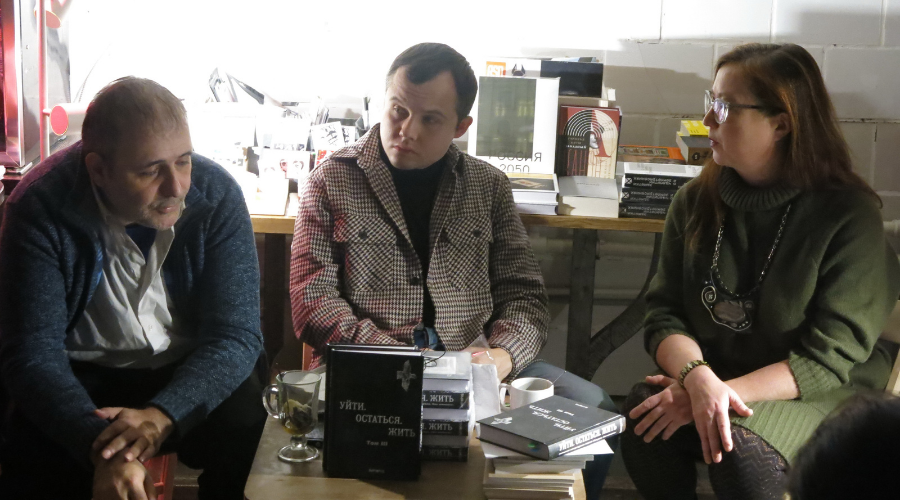 Николай Милешкин, Борис Кутенков, Елена Семёнова на презентации