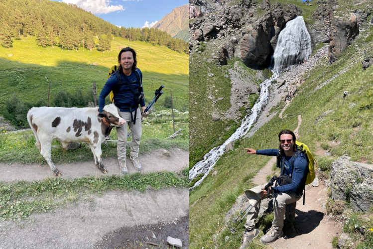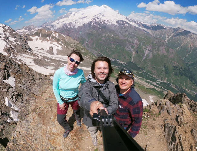 Участники похода - главный редактор портала Алексей Небыков и литераторы из Москвы Андрей Поршаков и Анастасия Трубникова - прилетели в Приэльбрусье 16 июля. За несколько дней ребята успели пройти экологическую тропу, посетить Долину нарзанов, музей Высоцкого, подняться до водопада Девичьи косы, Обсерватории и вершины горы Чегет (3500 метров).