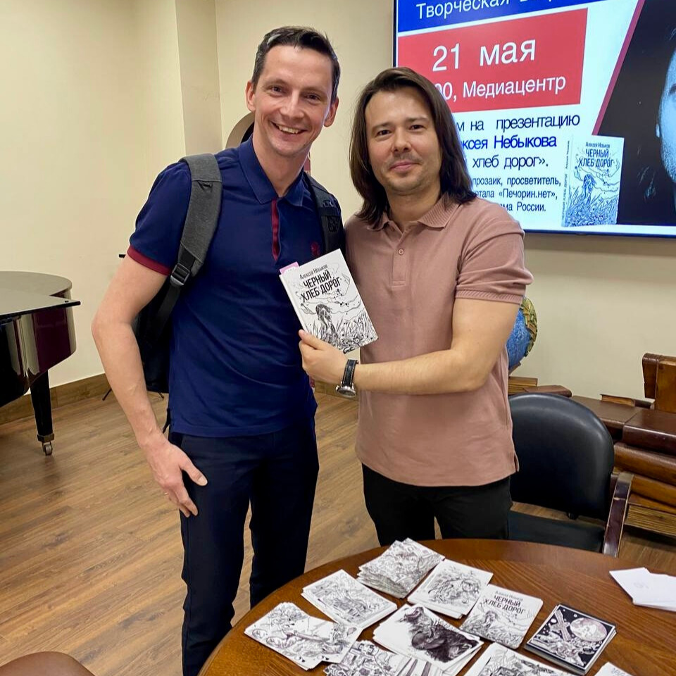 В продолжение вечера А. Небыков поделился историей появления сборника «Чёрный хлеб доро́г». Сначала были публикации отдельных рассказов в толстых журналах, участие в конкурсах. Постепенно настало время, когда талантливые современники были готовы не только похвалить прозу Небыкова, но и дать цитату о ней для обложки.
