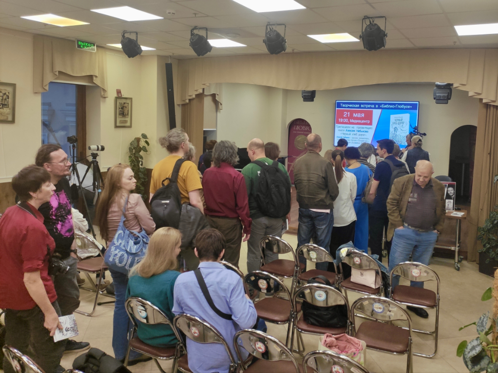 Одна из зрительниц спросила, являются ли, по мнению автора, его читательской аудиторией подростки – если подходить с морально- нравственной позиции? Книга адресована читателям 12+. Возможно, стоит чаще встречаться с подростками и представлять им книгу.
