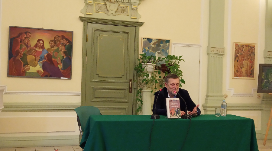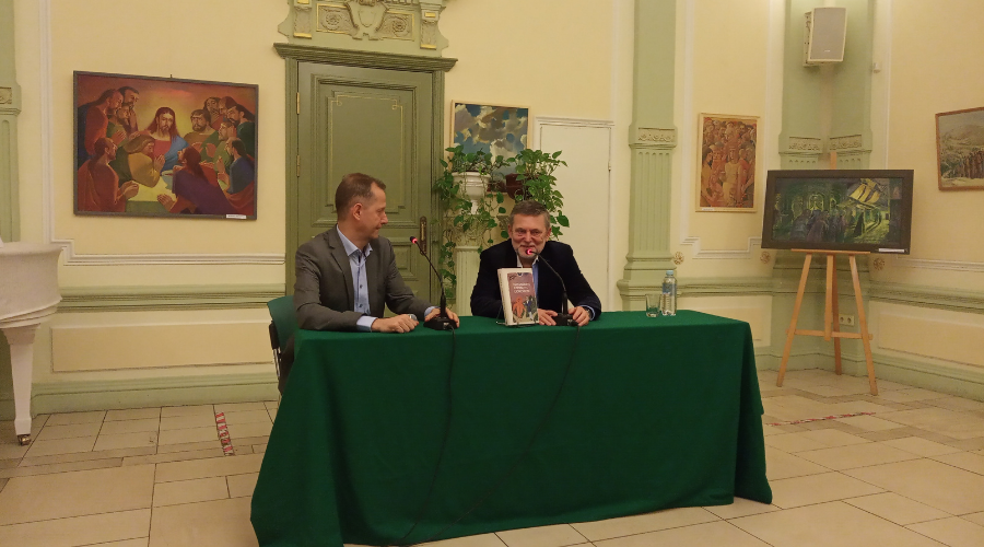 Иван Андреевич рассказал, что предыдущая книга издательства «Новое время» – «О любви. Радикальные интерпретации Ивана Есаулова» – была представлена в «Покровских воротах», но уже в редуцированном формате, два года назад. Две книги задуманы как диптих, на традиционной орфографии.