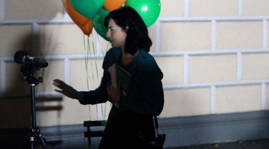 Софья Ремез тоже кое-что зачитала, но не фрагмент из своей книжки, а небольшой текст о том, как выступать перед детьми, чтобы они не заскучали. Действительно, детям скучно на презентации не было. Веселый задорный текст от автора, выступления современных поэтов, которые спешили поздравить Софью, а ещё - воздушные шары, которые периодически взлетали в небо, благо погода позволила провести встречу на свежем воздухе.