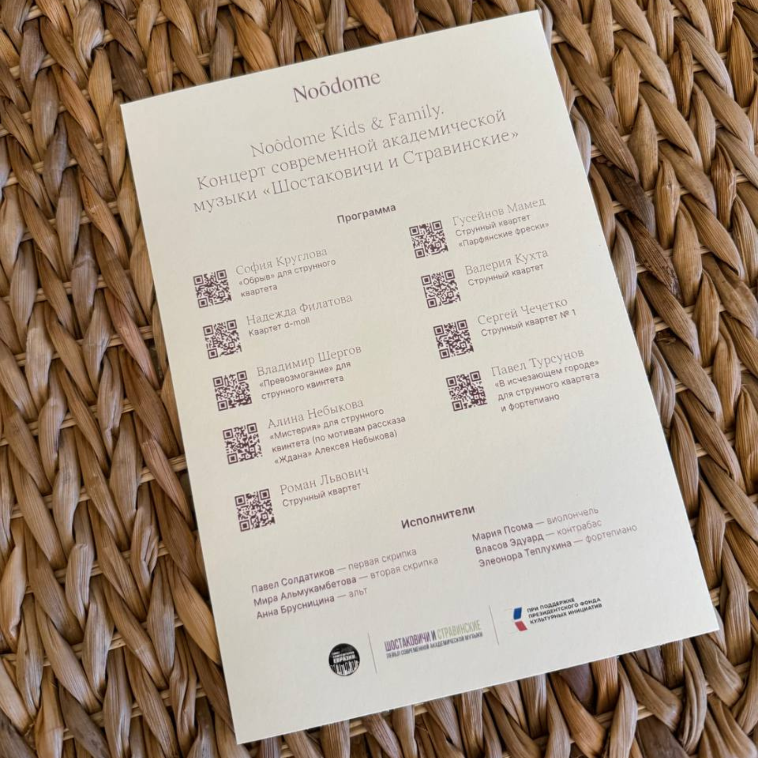 Что сразу значительно удивило на этом концерте – это очень емкая программка, содержащая минимум информации, но рядом с каждым сочинением был размещен QR-код, перейдя на который можно прослушать произведение целиком, некоторые в силу их большой протяженности были представлены отдельными фрагментами.