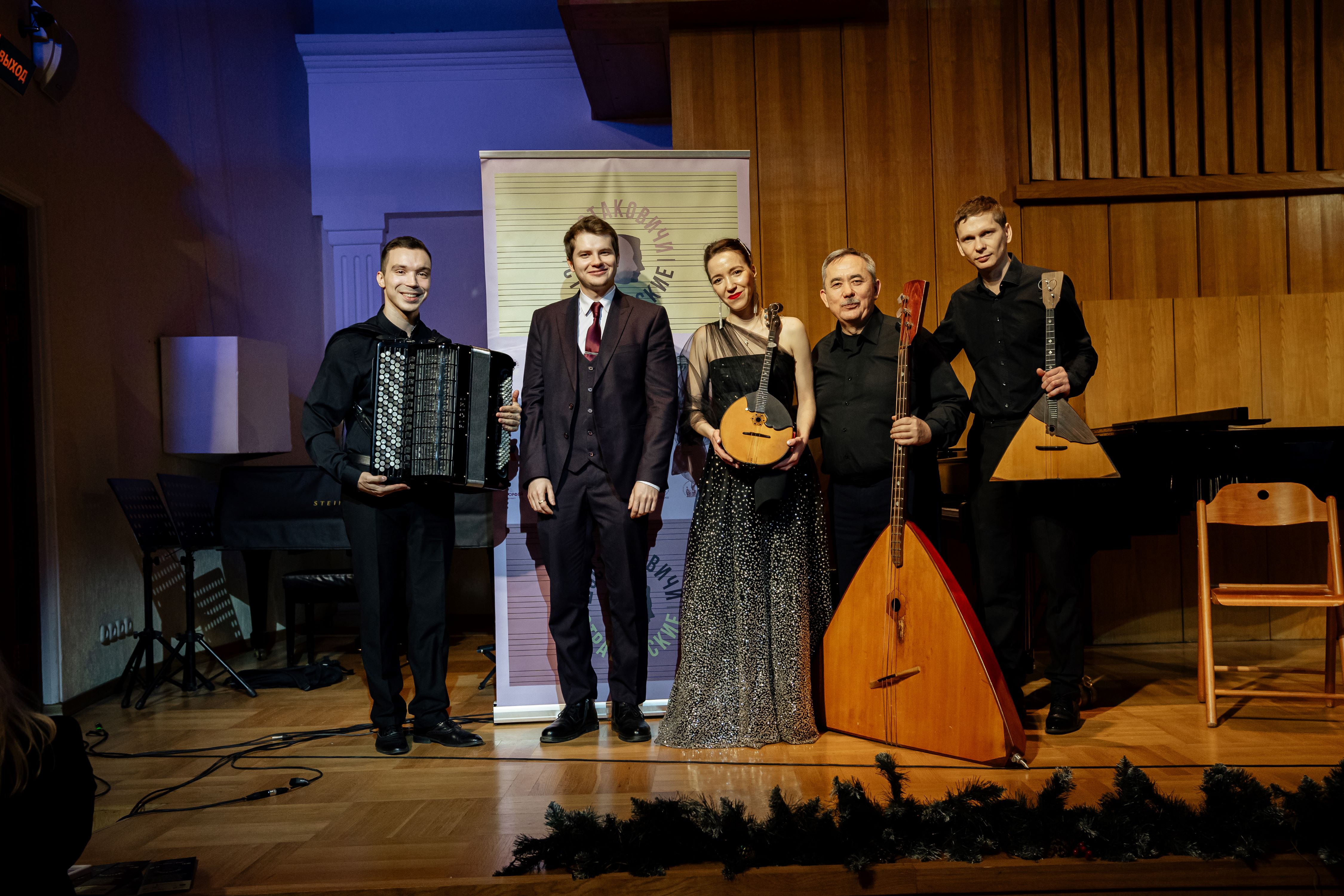 Одним из таких концертов стал вечер 6 декабря, где в исполнении блестящих солистов ГАРНА «РОССИЯ» им. Л.Г. Зыкиной (художественный руководитель – Заслуженный артист РФ Д.С. Дмитриенко) Луизы Нуриевой (домра), Владимира Дунаева (балалайка), Кирилла Русинова (баян) и Заслуженного артиста РФ Эфнана Ибадлаева (балалайка контрабас) и Ксении Исаевой (домра), а также самих авторов прозвучали произведения современных композиторов, некоторые из которых только начинают свой творческий путь.