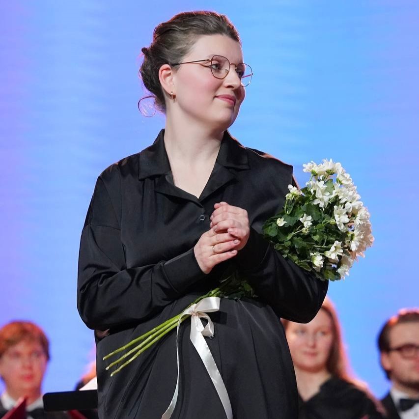 Финальным аккордом концерта-презентации издательства «Шостаковичи и Стравинские» в концертном зале Национального центра «Россия» стало вокальное сочинение «Мама» (музыка и стихи Алины Небыковой) в исполнении финалиста проекта «Голос. Дети» Данила Клюжина и Молодежного Синодального хора.
