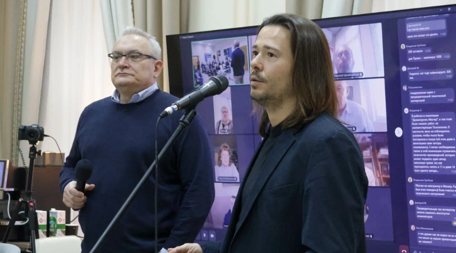 На заседании эксперт премии, писатель Даниэль Орлов вручил медали «За содействие СВО» коллегам — поэтам Анне Поспеловой и Арсению Ли.