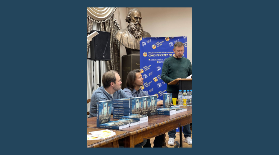 «Презентация книги «Зеркальный детектив» проходит в легендарном здании Союза писателей России, крупнейшей писательской организации в нашей стране. В этом доме бывали М. Шолохов, Р. Газматов, В. Распутин и многие другие прозаики и поэты.