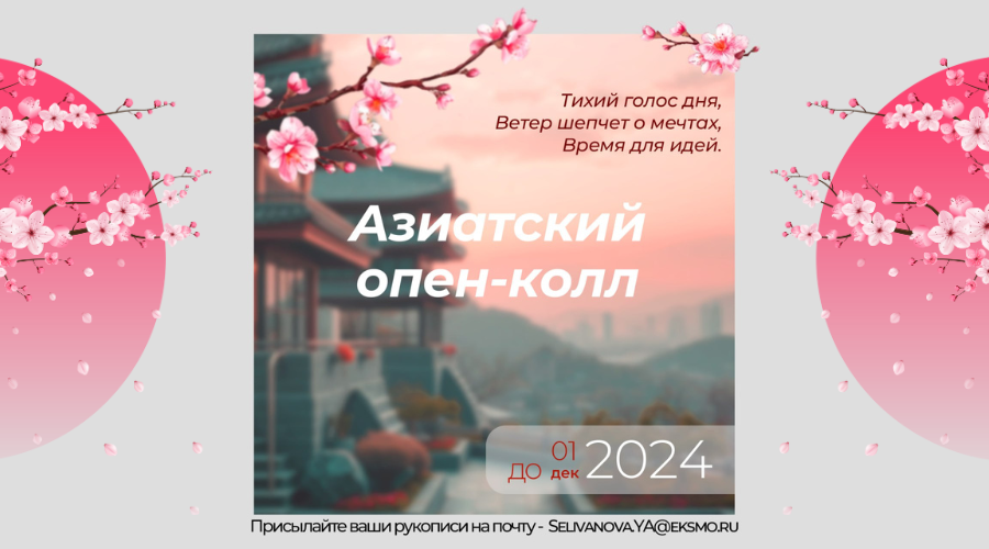 Основные требования: Принимаются произведения в жанрах азиатское фэнтези, романтика, исторический роман, ориентированные на женскую аудиторию, действие которых разворачивается на фоне азиатского колорита, объемом от 5 авторских листов.