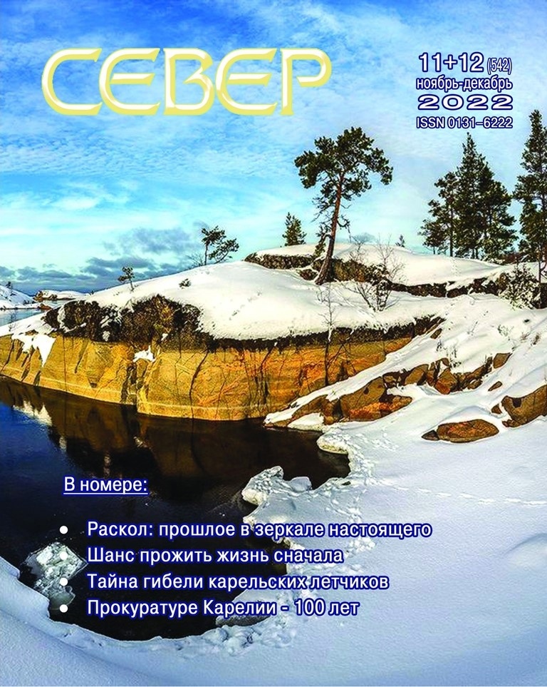 «Север» – литературно-художественный и научно-публицистический журнал академического уровня. Издательская концепция журнала двояка: с одной стороны, на его страницах говорится конкретно о русском Севере как о географическом ареале, с другой – в журнале «Север» говорится о романтике Севера и сопряжённом с нею риском; он неотделим от жизненных испытаний вообще (не только от конкретной географической территории). Основные темы 11-12 выпуска журнала «Север» за 2022 год: Родина и чужбина (Елена Фрумина-Ситникова «Опыт непрожитой жизни», повесть, и др.); природа человека (Игорь Семёнов «Амёба», рассказ, и др.), историческое прошлое страны (Елена Крюкова «Раскол. Книга огня», роман, Владимир Василиненко «Светлейший Алексашка», исторический роман (окончание) и др.).