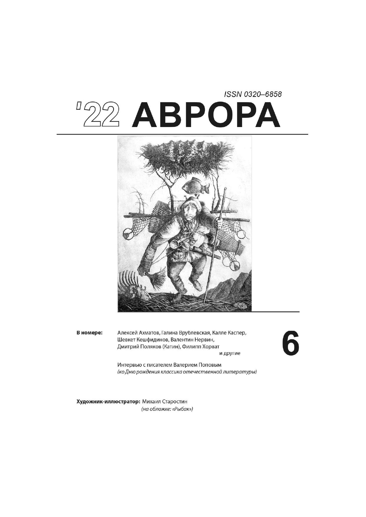 Помимо традиционной для толстых журналов рубрики «Поэзия и проза» в шестом номере «Авроры» за 2022 год представлены произведения в разделах «Писатели народов России», «Книги нового времени», «Дебют». Главный редактор «Авроры» Кира Грозная взяла интервью у писателя-юбиляра Валерия Попова. Название обзору дала подборка стихотворений Дм. Бобылева «Вот человек, оставленный в веках». Мир литературы «пробирается сквозь время, оставляя только самое важное, необходимое в настоящем».