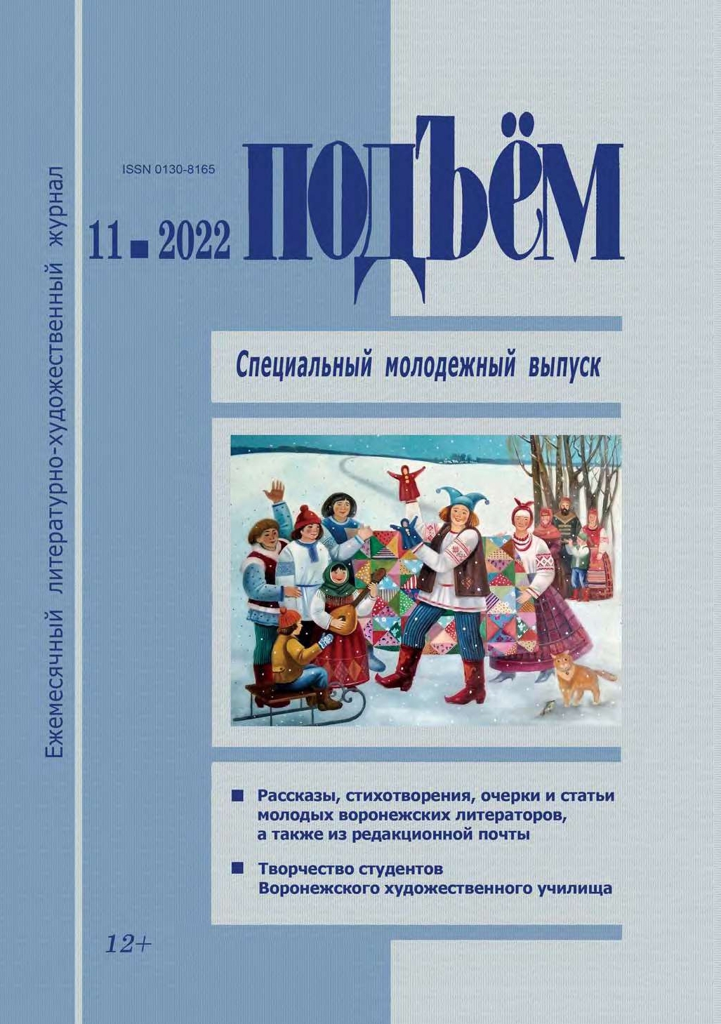 «Молодым везде у нас дорога!» – именно этим девизом руководствовались редакторы 11-го номера воронежского журнала «Подъем» за 2022 год, предоставив возможность проявить себя в этом выпуске литературно-художественного издания исключительно молодым авторам. И это решение себя оправдало: читатели познакомились с творчеством начинающих литераторов, а те, окрыленные подобным доверием, смогли поверить в себя.