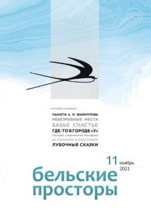 В одиннадцатом номере «Бельских просторов» за 2022 год читателя ждёт музыкальная поэзия, проза о любви (первой и нежной, зрелой и долгожданной, патриотической и неподкупной), дань уважения известным поэтам и меценатам, полезные прикладные советы путешественнику, интервью с писателем, обзор сериала и книг.