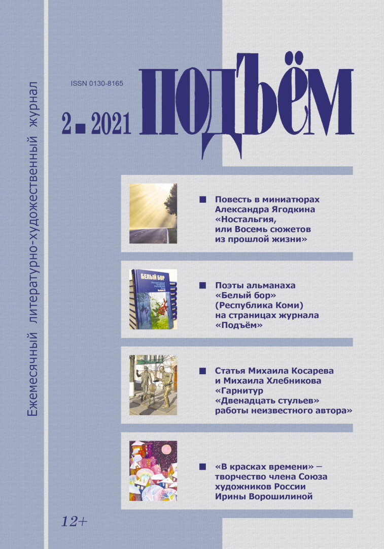 В февральском номере «Невы» представлены разная проза и разная поэзия. Представлены разные подходы в критике, литературоведении, истории литературы. Есть социально-философский материал и фрагмент фундаментального богословского труда. Традиция так же тесно перемешалась с новаторством в литературе в целом, как в поэзии русская традиция, силлабо-тоника вынужденно приняла в компанию самый разный авангардный стих, – и, кажется, в итоге от этого выиграли все. Трудно выделить в номере журнала одно-два лучших прозаических произведения или подборки стихов, да и не стоит этого делать, по-моему. Журнал задуман составителями так, чтобы читать его от корки до корки, все 254 страницы. Разумеется, имея полное право пропустить то, что совсем не идёт и не отзывается – по личному читательскому ощущению.