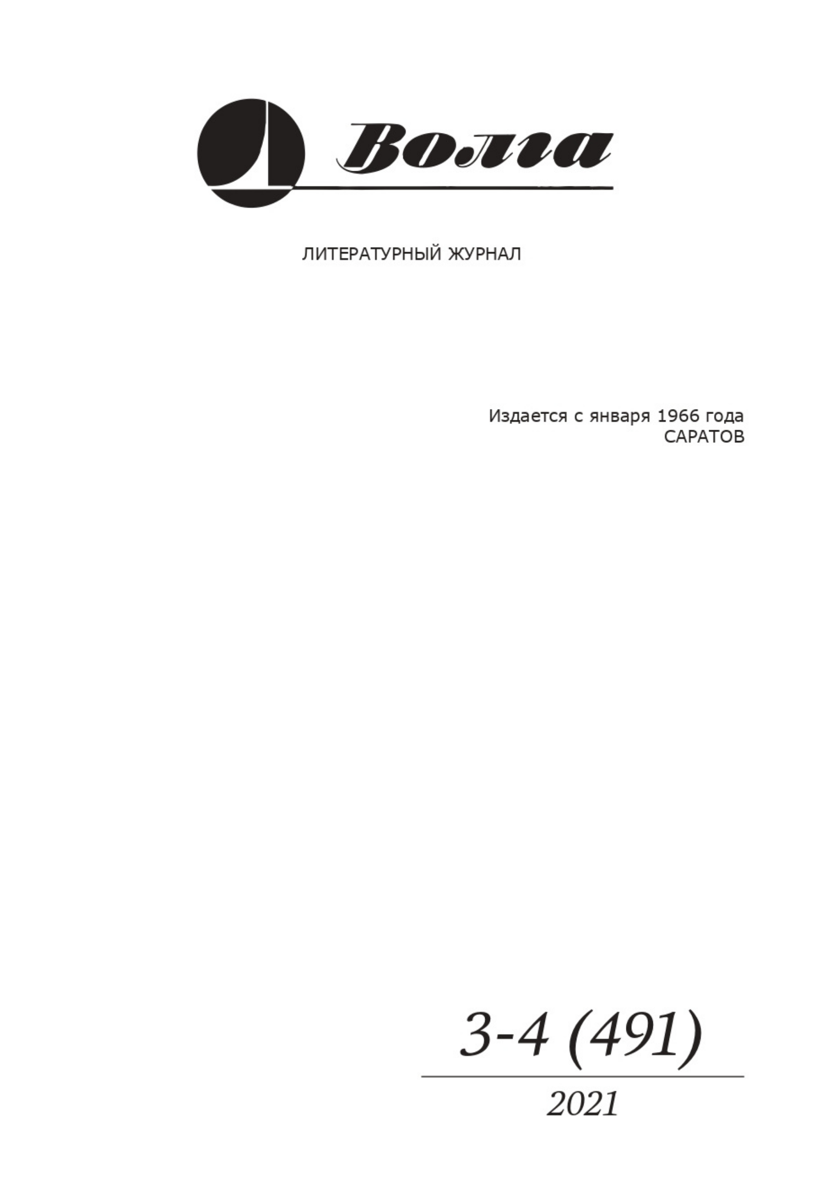 «Волга» № 3-4 (491), 2021