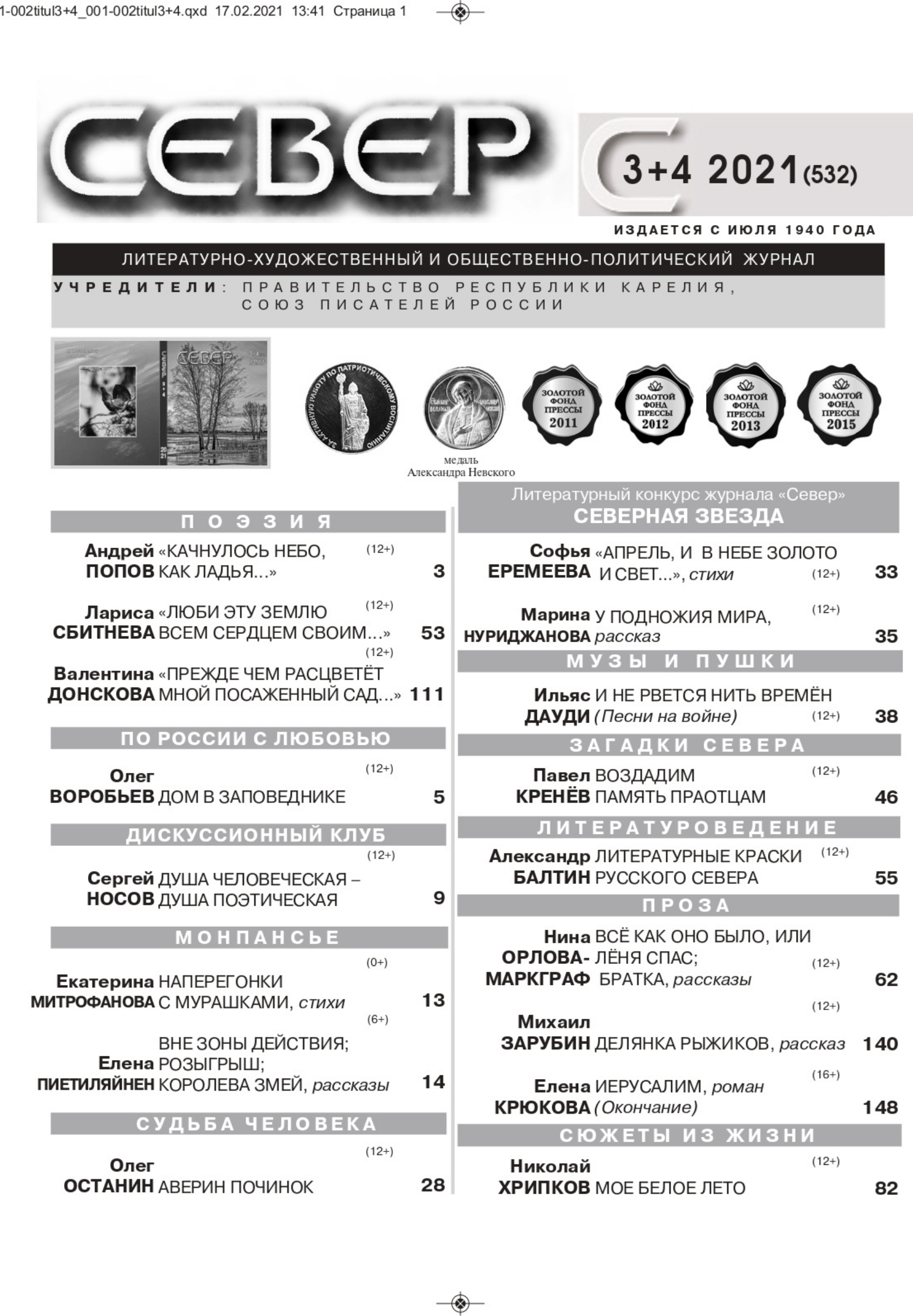 «Север» № 3-4 (532), 2021