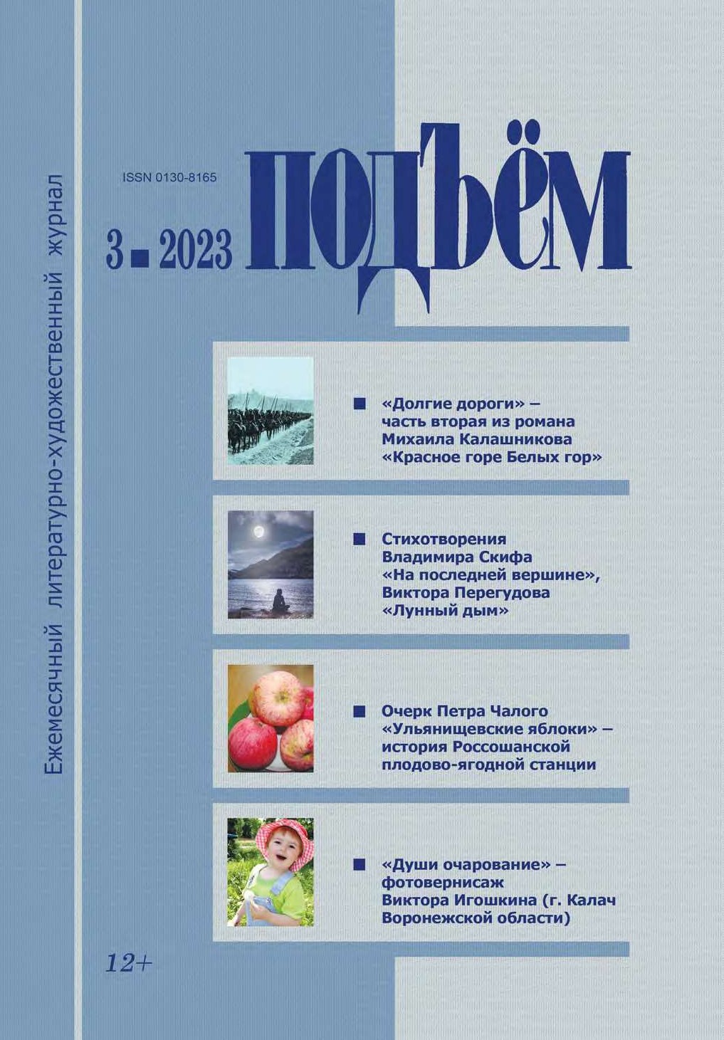 Философская поэтическая подборка о прошлом, настоящем и будущем родной стороны, о неизменной природе человека и вере в лучшее. Проза о тяготах и лишениях военной поры, о чувстве сострадания и жалости. Публицистическая часть о воронежском писателе Е. Новичихине, о русских самородках – писателе И. Бунине и певце Ф. Шаляпине, о поэтическом мире В. Хлебникова, а также о новой книге прозаика Н. Иванова «Суворовец Воевода. Боец Республики». С этими и другими материалами можно ознакомиться в мартовском номере журнала «Подъем» за 2023 год.