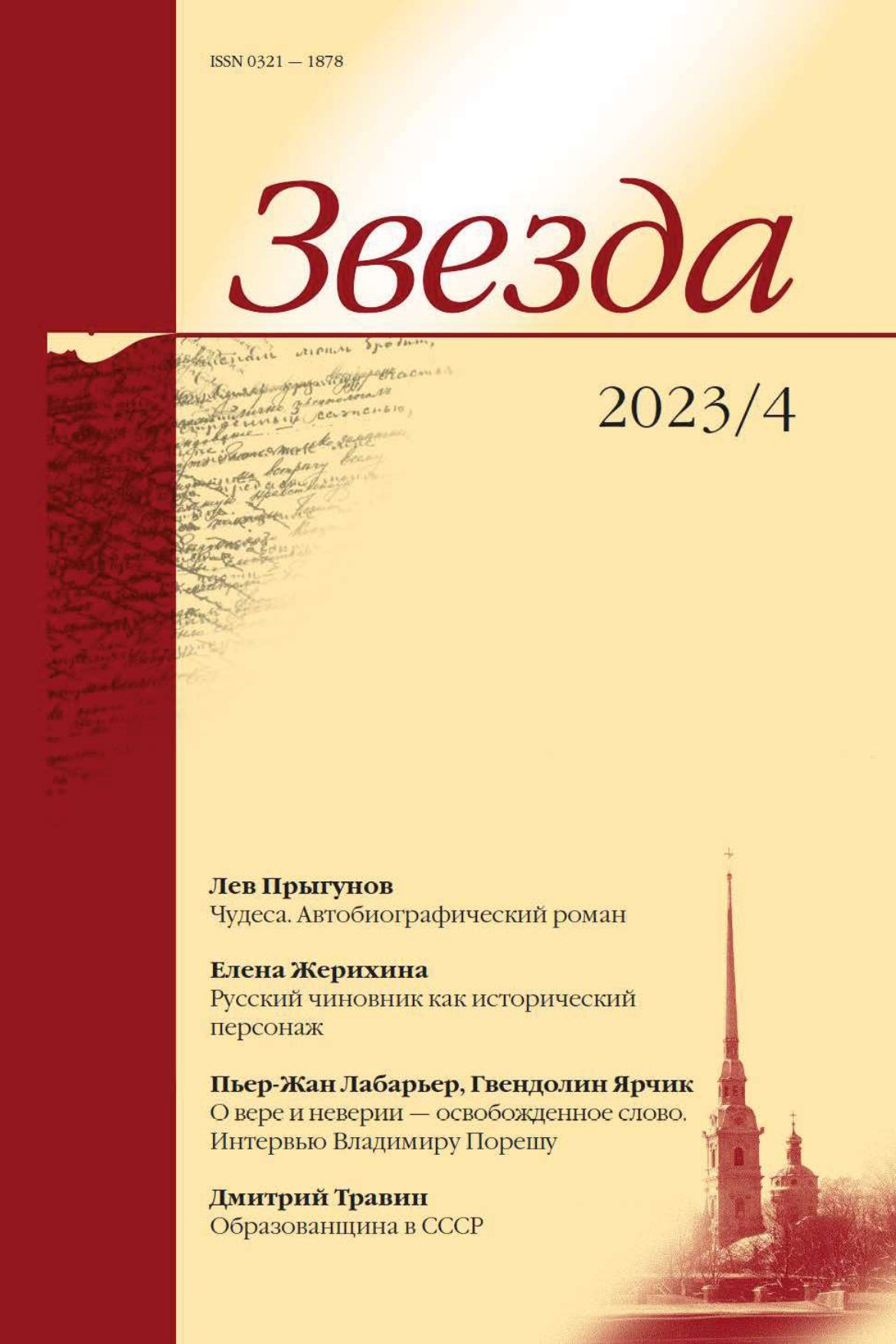 Основные темы 4-го выпуска журнала «Нева» за 2023 год: любовь и семья (Антон Нечаев «Титай», рассказ, Александр Пономарёв «Глупый скворец», «Ценный сервиз», «Иван Иваныч», рассказы), советское прошлое: события и лица (Михаил Кураев «Человек у горизонта», эссе), Россия и Православие (Вячеслав Влащенко «Трагедия Катерины в драме А.Н. Островского «Гроза», статья, Архимандрит Августин (Никитин) «Петербургские храмы в записках иностранцев», историческая хроника) и др.