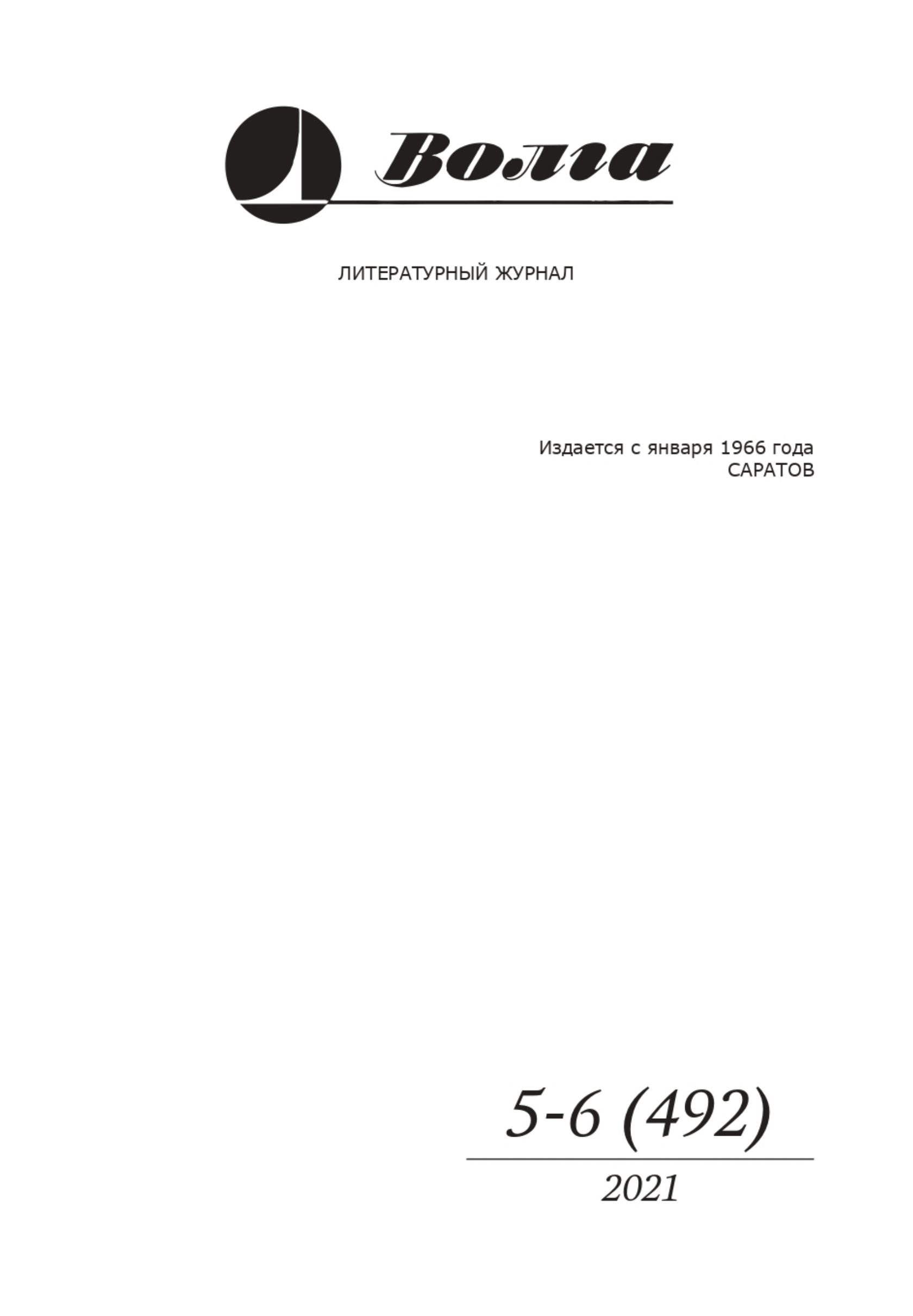 «Волга» № 5-6 (492), 2021